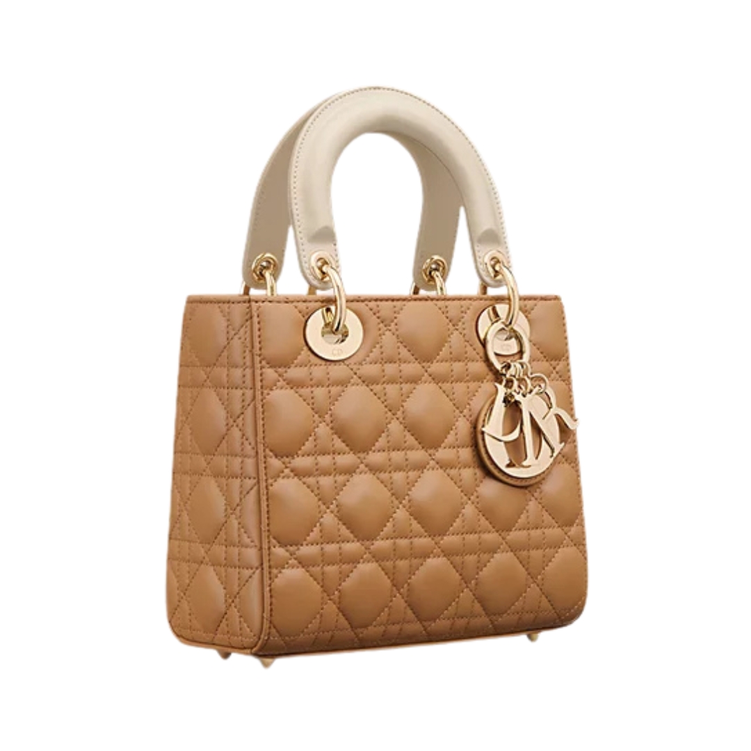 Lambskin canneté bicolore marrone medio e avorio polveroso